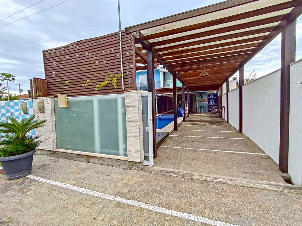 Aluga-se casa situada no Balneário Ponta do Papagaio, em condomínio fechado e aproximadamente 300 metros da praia, equipada com: